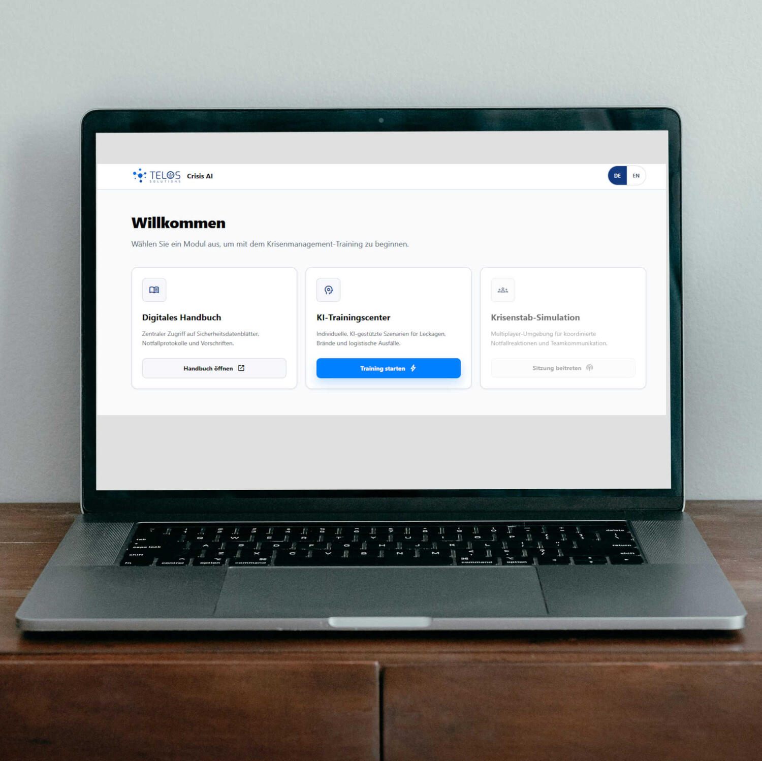 Krisenmanagement erfordert Übung. Unser KI-Trainingstool ermöglicht realitätsnahe Krisensimulationen auf Basis Ihrer Unternehmensdaten aus dem Krisenhandbuch.Mitarbeitende wählen Rolle, Szenario und Schwierigkeitsgrad - und steigen direkt in die Simulation ein. Einzeln im 1:1-Training oder als Team in der geführten Krisenstabsübung.
